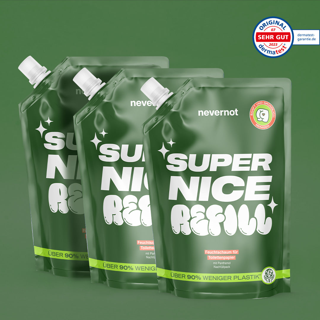 Feuchttücher sind ein Problem: Sie gehören nicht ins Klo, stecken voller fragwürdiger Inhaltsstoffe und sorgen für Ärger in Kanalisation und Hautflora. Super Nice Foam ist die zeitgemäße Alternative – sanft zur Haut, stark zur Umwelt und endlich ohne schlechtes Gewissen.