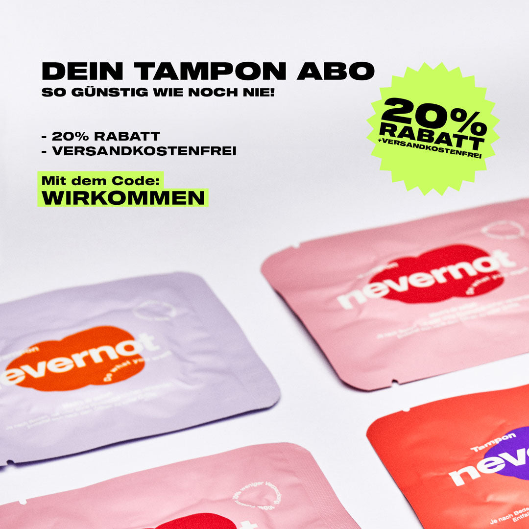 1) You can order all nevernot tampon packs in subscription (24 to 150 pieces), choose a size and save 20% on the normal price.